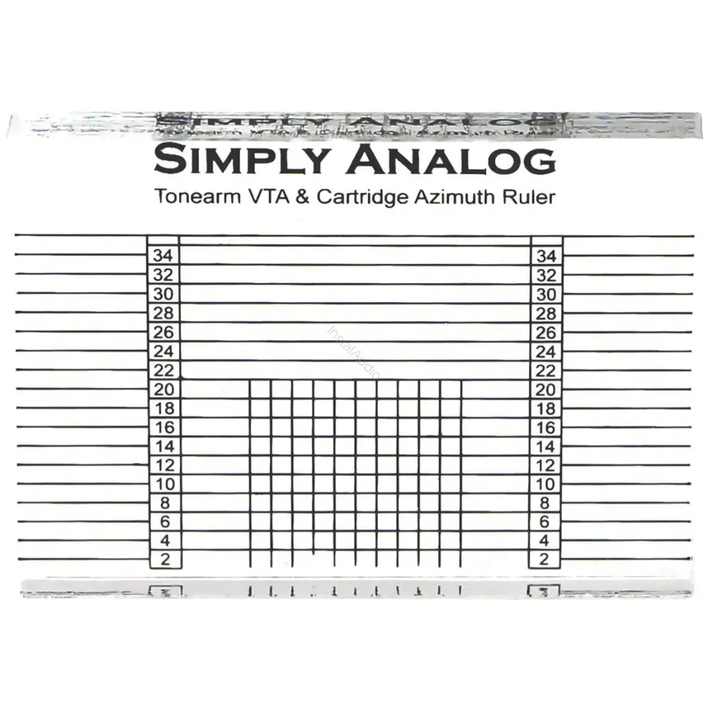Simply Analog VTA & Azimuth Ruler to precyzyjny szablon wykonany z akrylu, zaprojektowany do łatwego ustawiania kąta pionowego śledzenia (VTA) oraz azymutu wkładki gramofonowej. Dokładna regulacja tych parametrów jest kluczowa dla uzyskania najwyższej jakości odsłuchu oraz zapobiegania nierównomiernemu zużyciu igły, co wydłuża jej żywotność.